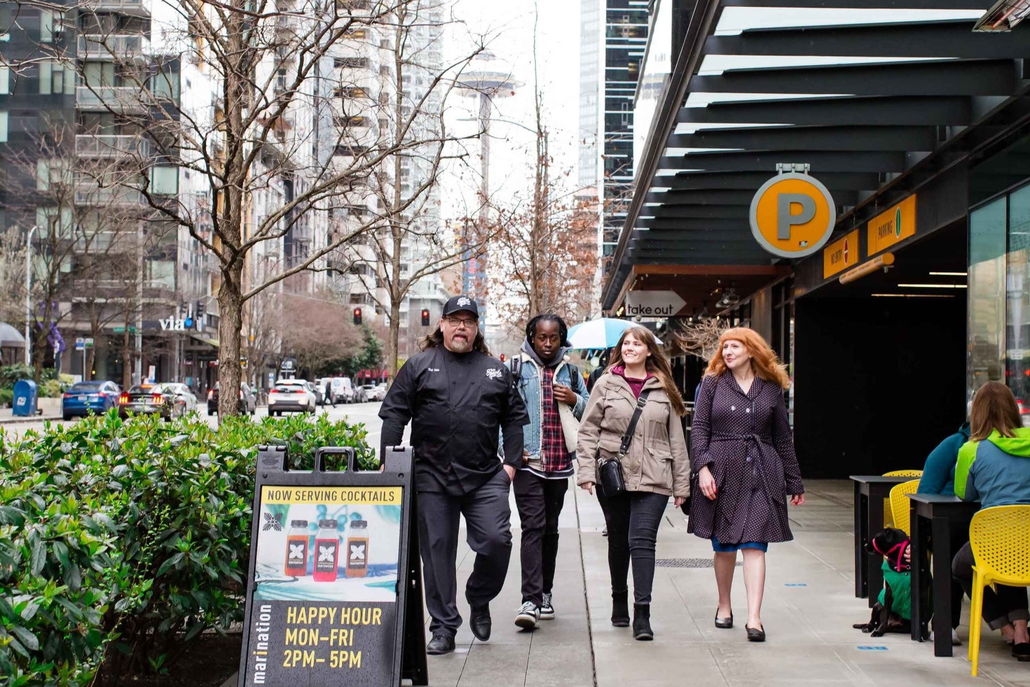 Tag med på Happy Hour madtur og cocktails! Nyd gademad og drinks ved 4 stop. Oplev Seattles madscene med en kok, hver 17.00-19.00 fredag og lørdag!