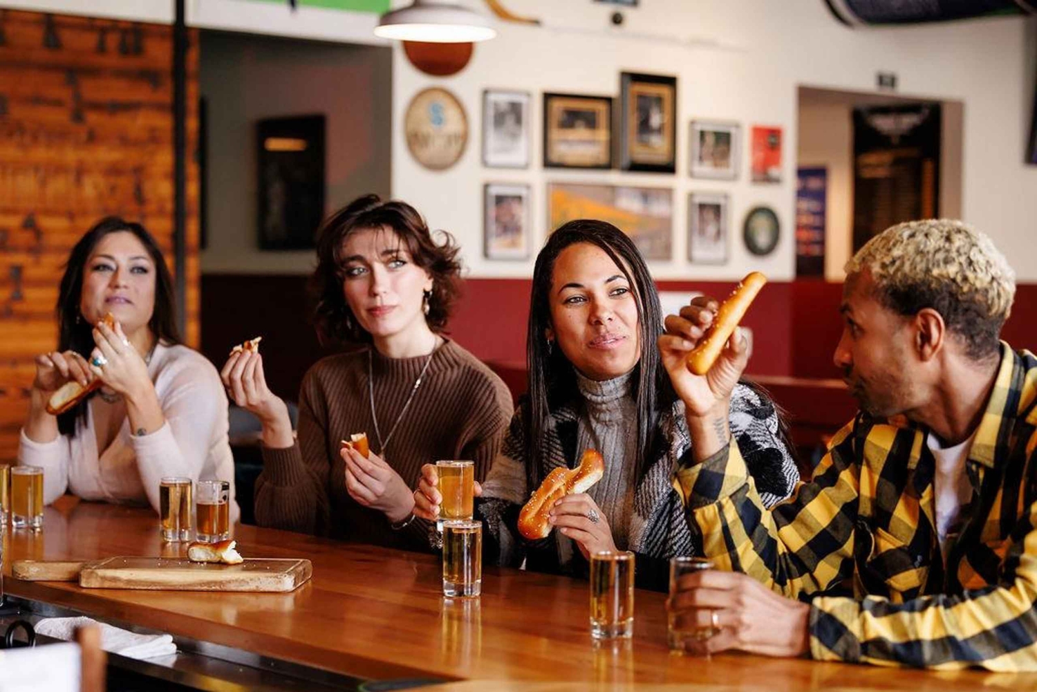 Situato nel cuore del Seattle Center, con lo Space Needle che svetta sopra di voi, questo tour unisce storia e sapori in un modo deliziosamente caotico ma innegabilmente glorioso. È autentico, è reale, è Seattle. Questo tour non è per i deboli di cuore o per i troppo schizzinosi: è per gli avventurosi, i curiosi e gli affamati di qualcosa di vero. Ci immergeremo in ciò che Seattle ha di più autentico: i sapori iconici e la ricca storia del Pacific Northwest. Inizieremo con un classico hot dog di Seattle in un luogo iconico, per poi dirigerci all'Armory per una specialità locale: un appetitoso pasticcio di carne di manzo, che esalta gli ingredienti locali. Avrai anche l'opportunità di provare ostriche fresche di prima qualità della Taylor Shellfish (non preoccuparti, se non ti piacciono le ostriche puoi tranquillamente saltare questa degustazione). Successivamente ci dirigeremo verso il nostro locale preferito per assaggiare sidro e birra locali e i pretzel morbidi dello chef Brendan, preparati con cereali locali. Per finire, assaggeremo un dolce tipico del Pacific Northwest.